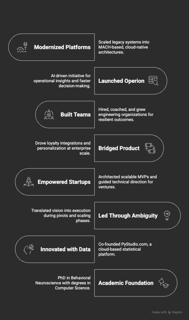 August 2025 — At this curated leadership dinner, we explored how software engineering is evolving over the next 3–5 years. My remarks focused on the emergence of the Chief Product & Technology Officer (CPTO) role, which brings product and engineering under one strategic umbrella. We discussed how CPTOs can provide a well-calibrated roadmap—balancing clarity and autonomy—so teams stay focused on valuable work without stifling innovation. One theme that resonated was that AI can write code, but the uniquely human skill is still leading people through trust, feedback, and alignment.