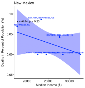 I did a correlation for each state (if available) to get a good visual to ascertain whether some states showed this same correlation or not (and to speculate as to why as well).