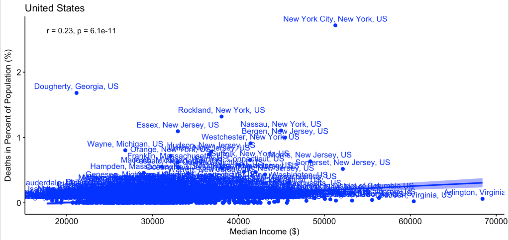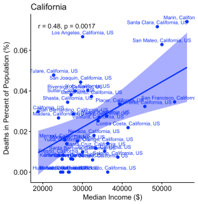 - Might more affluent areas have fewer, or more, cases of COVID-19?